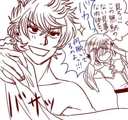 こんばんは!夜のテンションに恐怖してます。以前に、アシュヴィン実は脱いだらすごいんですに賛同というお言葉をいただき(しっぽ様ありがとうございました)その嬉しさにこんなキテレツなラクガキが出来上がりました…。